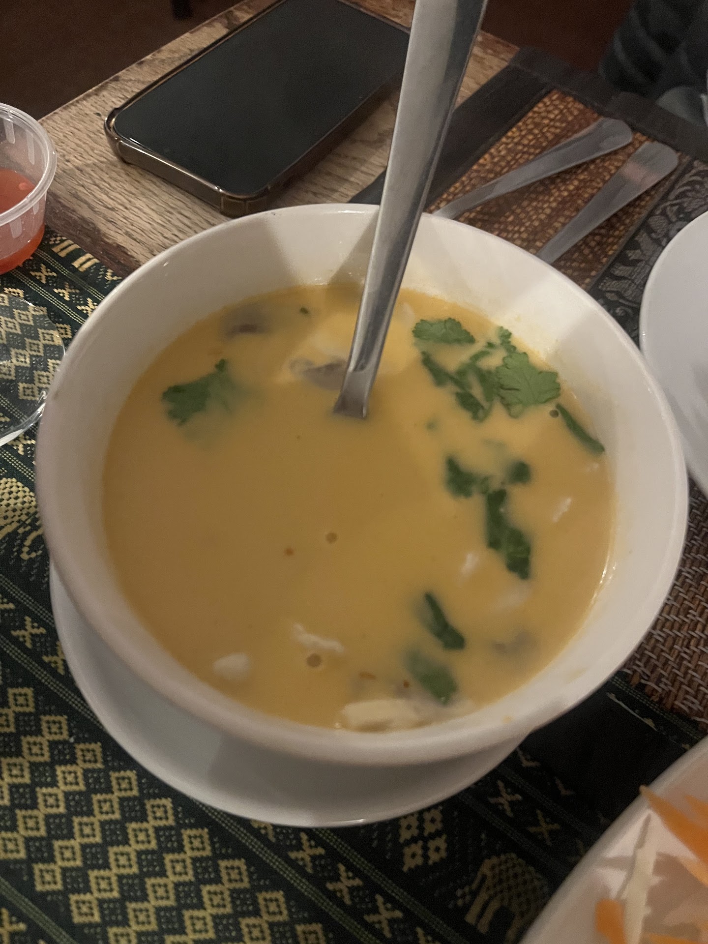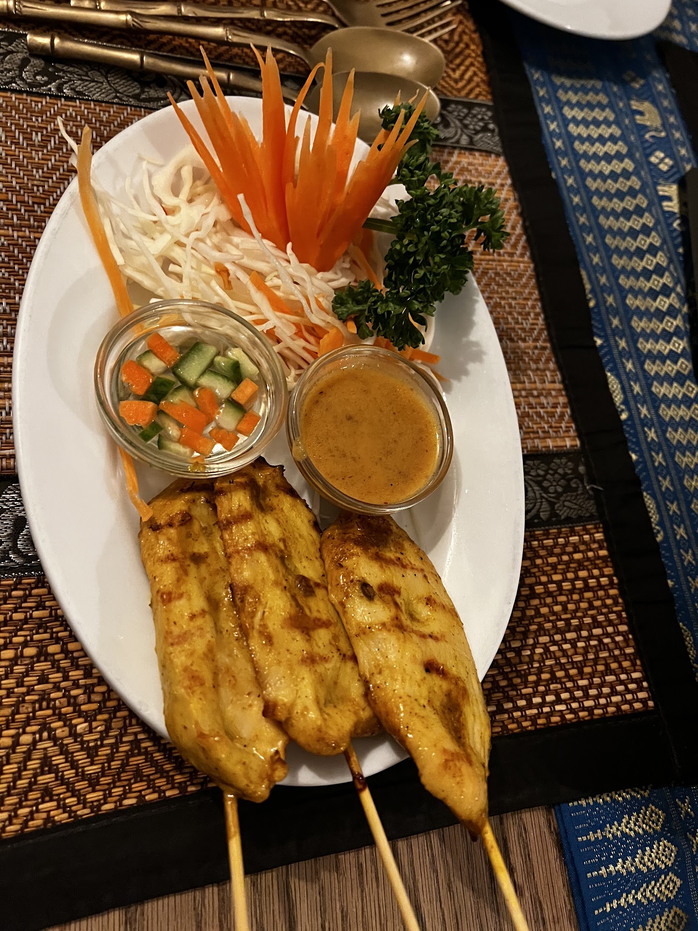 Ā Ā Ā Read moreA very strange āThai restaurantā experience. The food was bland, flavourless, unmemorable. A salad arrived without dressing but with a peanut dip to accompany it. The salad itself consisted of dried out pieces of carrot and lettuce, white and red onion, white onion? Very odd. No cucumber, no lime and no chilli. Three staple items in a Thai salad. A chicken salad was also unpalatable, with rubbery and gristly pieces of rather old chicken. We returned that dish and it was taken off our bill accordingly. Maybe the real chef was not in post that day. There is no way of knowing. If this was food cooked by the main chef and they earn 4.4 in review scores the customers must be from another planet. Having eaten Thai food all over the UK and all over the world I know a little bit about what qualifies as authentic and good quality Thai food. This was a 0 out of 10 experience. A huge pity as a lot of people seem to recommend this restaurant but perhaps that is when the true chef is in post a big letdown. Was hoping for a quality meal based on the 4.4...
