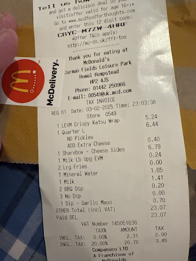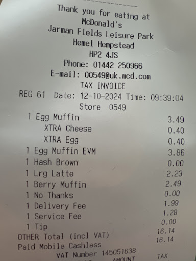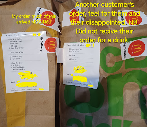 Read moreMy beef with MD (that tends to get itself in a jam with poor customer services). I understand & get it that mistakes happen, all part of being human however, it's clear MD without prejudice needs visit to spec savers. Many of our orders have arrive with missing/'s items like today. Half our item arrived & unless my name has been changed by deed poll half someone else's too. Oh so such fun playing MD's version of the TV series 'Who Wants Be A Millionaire.' 50:50 will my order arrive all correct? Then the added anticipation do I need phone the delivery company? Any time contact MD they tend to chicken out & won't accept responsibility, certainly fishy when 'free' items fail to arrive as well. By other reviews seems we're not only one's who's encounter issues with MD. Paper straws let's face it, not nice getting a mouthful of paper (unless one is wasp or a Rodent.) Not wanting milk it further with waffle but MD need to Whip into shape by improving on customer services & ensuring high standards are met at all times & not leave customers dissatisfied, out of pocket (& food.), are given poor service. Before I wrap up this review, on a side salad đ„ note we miss Burger King!! Indeed Whimpy Bar. To tune of Old McDonald had a farm" MD's have many burger joints ei ei eio, & often deliveries arrive incorrect ei ei eio. Customers end up annoyed and leave reviews here, MD are not helpful there & missing items, poor services is a very big issue...