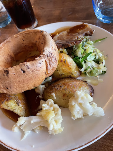 Big Yorkshire but not much gravy to go with it so again it was dry. The cauliflower cheese was very disappointing. You can see my picture how there are two tiny pieces and it felt like they just been waved in a bit of cheese sauce. If you contrast that to the cauliflower cheese that comes with the vegan roast dinner, then the vegan one comes with a full portion.