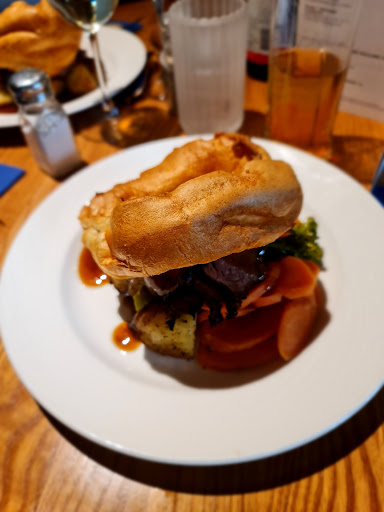 ย ย ย Read moreWell, what a mixed bag ! Myself and 3 others went for lunch together, and all of us selected a different Roast Lunch. I have to say my pork was lovely, though one person thought the food wasn't hot enough not stonking hot, like you'd hope it to be, being freshly cooked. However, a jug of hot gravy was duly delivered to warm the meat up, so that seemed to redeem the situation somewhat. All plates were cleared, nonetheless. For pudding, my sticky toffee & custard was really nice (and hot) but the other 3 people all ordered a mini dessert and coffee. Having worked in a Cafรฉ before I know what a Cappuccino should be like, and neither of the 2 cups arriving at our table were worthy of being called Cappuccino, with hardly any milky froth on top, just oodles of chocolate sprinkles, and sadly the taste wasn't particularly appealing either. There must have been at least 7 or 8 minutes between coffees arriving and the desserts, meaning coffees were half drunk, rather than both arriving together again, a little disappointing. The young service crew was very attentive though. Overall, for me, the food was good, and I'd go back for another meal sometime, perhaps with slightly lower...