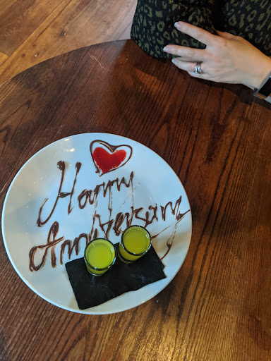 From the moment we walked into the restuarant they had hand sanitizers and kindly asked us to put our masks on. Each waiter had a face shield on. We had a very friendly and helpful female waiter who helped us with everything we needed and provided us with EXCELLENT customer service. The male waiter gave us 2 complementry drinks for our anniversary which was a shocking suprise.