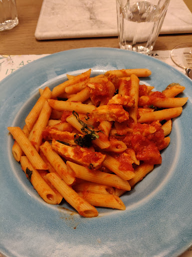 I have the penne arrabbiata con pollo, which was neither spicy with chilli, nor especially tasty. I admit to being a little disappointed. My family ordered calzones (my normal order) and a pizza and seemed much happier. The calzone carne piccante was notably hot with my cohort opting to removing the chillis as a result. Be warned!