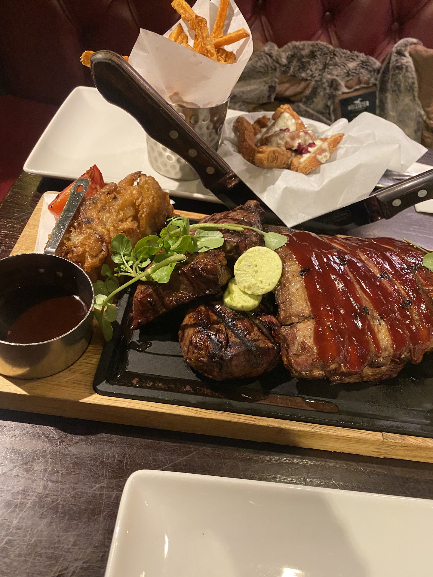 I had high hopes but left disappointed. We ordered the cote de boeuf experience. The Mac and cheese was tasty, as were the chips and greens. The steak itself was flavorless, I've never experienced bland steak before! The lobster tail was also overcooked. It was so tough and chewy it was almost impossible to remove from the shell. We paid £100 for the "experience" and felt ripped off...the red wine was nice though! They make good cocktails. I enjoyed my aubergine bao bun starters and Creme Brule afters but it was all overshadowed by the bland steak and overcooked lobster which was the most important part! A huge redeeming factor though was the customer service from Bev. She was so friendly and accommodating and definitely gained this review an extra star. So thank you Bev!