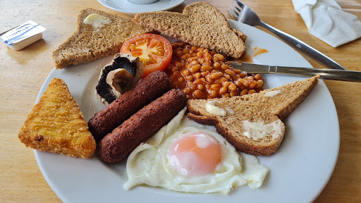 We ordered 2 vegetarian breakfasts and coffee. The coffee was really lovely. Our breakfast arrived in good time and at first, appeared to be fine. The photo of the full English on the menu showed all the items on our plate with the exception of bacon. We had one item less and yet were being charged the same price!! Come on Mainsail, that's not fair, a piece of grilled halloumi or veggie bacon should have been available, or a price reduction in place. Whilst most of the breakfast tasted good enough, I was shocked to see we had been served HALF a mushroom!! REALLY?? Just shy of £10.00 and we were served HALF a mushroom! That was embarrassing!! The photo on the menu also showed tinned tomatoes, we were served half an uncooked, barely ripe tomato, if you're going to grill a tomato, at least leave it long enough to be at least warm!! Now, we also ordered 'brown bread' toasted, what we were served was 'brown bread' which had been shown the toaster/grill for about 30 seconds max, this is nothing unusual though, as most restaurants/cafés do not know how to make toast either. All in all, we felt cheated and discriminated against as vegetarians but the vegetarian sausages, eggs, beans, and hash brown were fine. During our 3-week camping stay, this was our first and last visit to the...