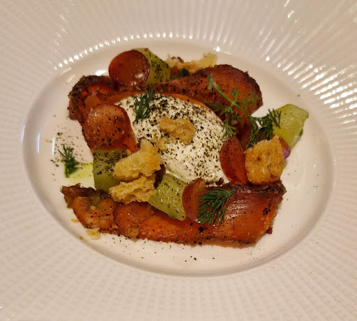 Smoked haddock just perfect the best I’ve ever tasted. The squid again with a slightly different take with amazing fragrant sauce. Finally some sea trout. All perfectly cooked and presented.