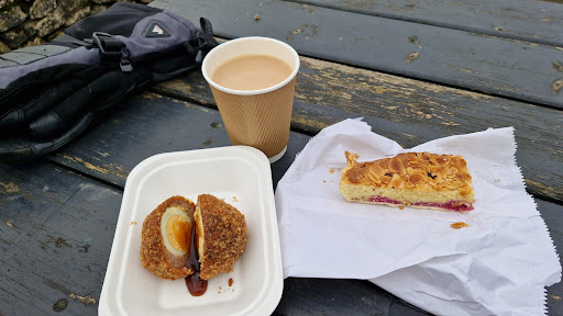 Read moreConvenient and staffed by a friendly lady, but they do take advantage of their remoteness. £2.60 for a piece of clingfilm wrapped flapjack. That's a sit inside, heated and dry, with WiFi price, not a bench in the drizzle. But, today at least, there was no queue, the tea was hot and the flapjack lovely, and the drizzle only light, but the...