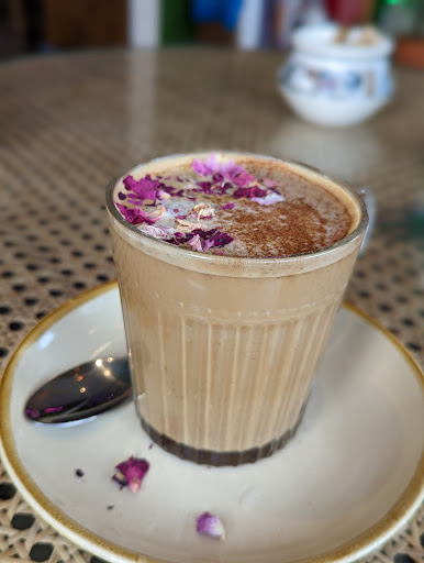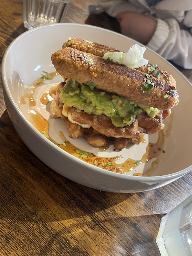 We went in for a coffee in the afternoon and were told the kitchen and upstairs was shut, the staff were very apologetic but it was still a little disappointing when we had only just arrived. We found a seat and the vibe is, interesting. I thought it was going to be cosy but instead it was cold both in atmosphere and temperature. The decor is a bit all over the place with both a hippie look but also neon signs that are super bright and quite a sensory overload.