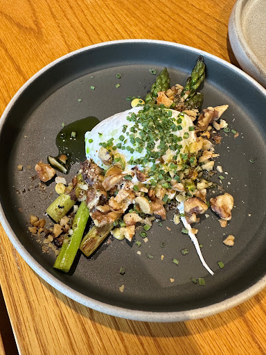 BBQ Asparagus, with olive oil, mayonnaise, poached hens egg & walnut crumb - The flavours to this dish were incredible. The walnut crumbs really do make this dish so flavoursome.