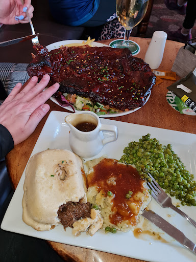 Having come in for a dinner and a drink on a holiday break away we looked up good local pub grub, the reviews and location all seemed appealing. The prices were typical for a main/s. My girlfriend ordered bbq ribs, and I ordered a steak pie, mash and peas.