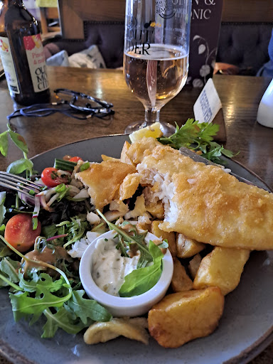 Read moreAfter looking for somewhere different to meet for lunch myself and friends visited this lovely pub. A warm welcome and good service was provided. I ordered Fish and chips with a salad which they happily accommodated. The batter was thin and crispy the fish white and thick. Lovely chunky chips and fresh salad with a tasty dressing. It was the best fish I've had in a long time, good quality and cooked perfectly. I had a decaffeinated cappuccino after which was lovely hot and creamy. The accessible toilet was large and clean with a higher seat if you need it. Accessibility wise the front steps have no ramp so I'm not sure if they have a different entrance with more level access. The car park is up a hill behind the pub with some parking out front which can be very busy. I was not in my chair for this visit. For me it was slightly difficult to access but once inside easy to get around and Very much worth the effort. 5 stars for the food...
