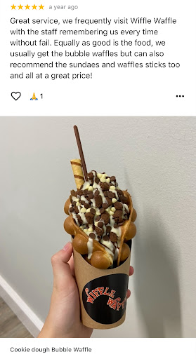 Read moreAbsolutely brilliant place to go, they make the waffles in front of you and you get to choose your toppings. I personally had a Bubble Waffle Cone - Strawberries and Cream and it was delicious! Really impressed as it was only £4.95 and it might as well have been a meal from the size of it! Really tasty and yummy, very popular and can get busy but it is definitely worth the wait! Is my guilty treat every so often to myself this place and I will be returning again to get another Bubble Waffle Cone!! Has to be the best place in Matlock Bath to get a Waffle/Ice Cream. Not only that but the servers and owners are so pleasant and friendly and always make sure that you are okay and happy with your product!...