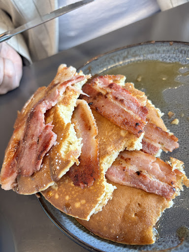 Pancakes that appear to have been straight from a supermarket packet, and perhaps a day old. The doughy texture capable of gluing my trap shut in ways that parents could only wish for some children.