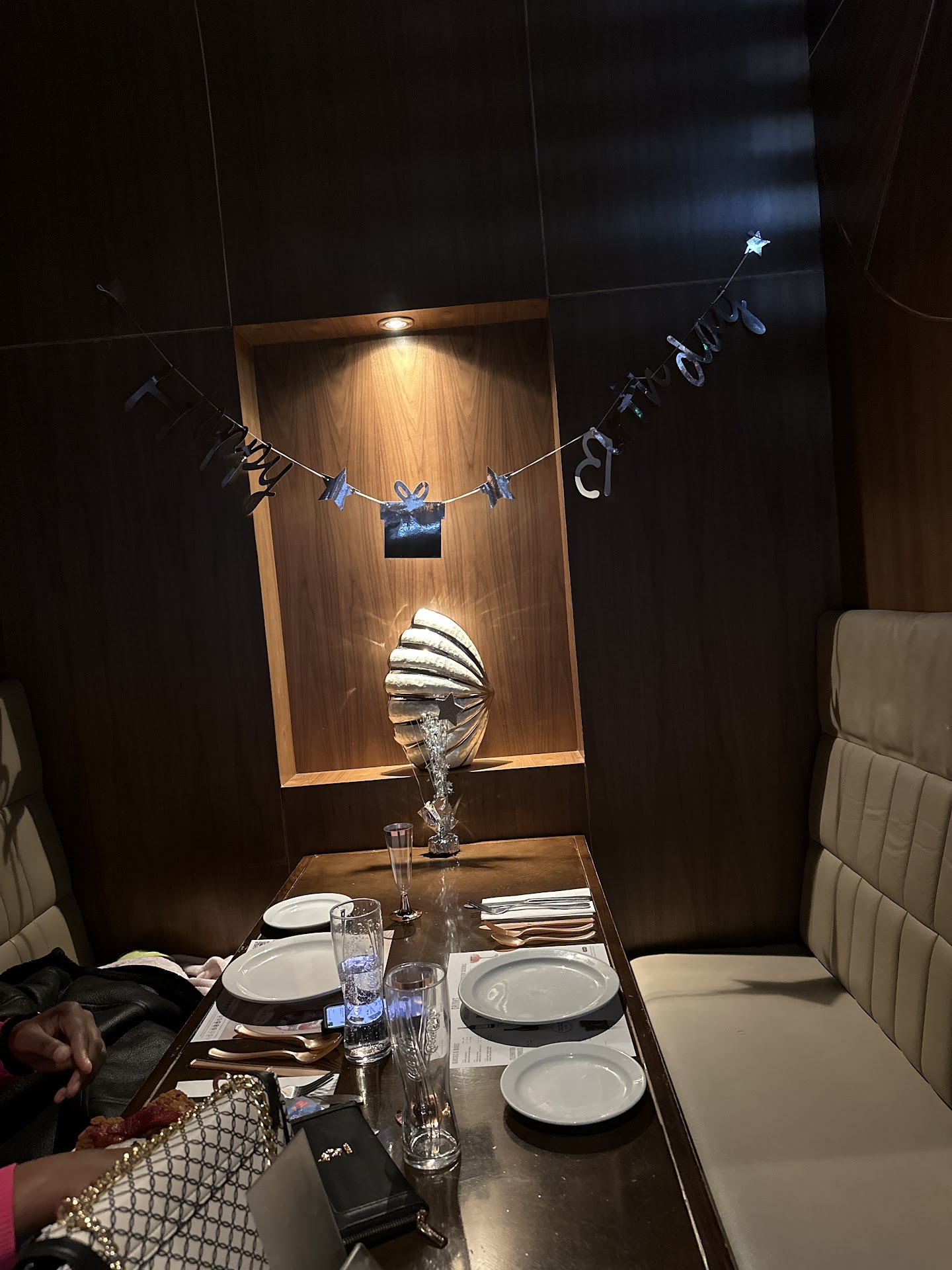 The toilets were horrendous. It's like they googled the worst bathroom fitter and got him in to do the job. 1 tap was hanging off the wall and didn't work. The sealant was up the mirror, and even the ladies who came into the toilet next to me were talking about the state of the toilet. The chairs were falling apart, and the leather was damaged. The tables were so scratched and dented, and it made it feel really unclean. A few times, we came back to the table, and the old plates were there, and staff weren't clearing them as fast as they should have been. It wasn't overly busy, so staff should have been more on the ball.