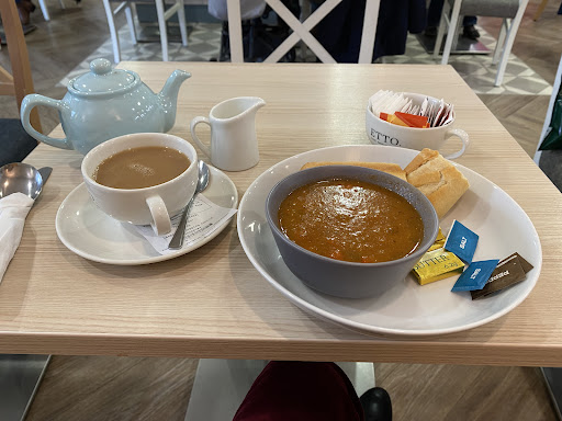 I’ve been to Etto’s many times for coffee and cake or a pastry. Only once have I been disappointed. It’s been a few weeks and thought I’ve got some time so will have lunch. As I’ve always found the counter staff very helpful and friendly. It was busy considering it’s a Monday and I thought I’ll try the beef and rustic bread. Expecting a hearty, filling thick soup/stew (as described) as I started eating I looked at the texture, flavour and cut of the vegetables. Having years ago been a good tester I’m well versed in knowing the difference between processes tinned foods and fresh. I was disheartened as it reminded me very much of a tinned soup, thickening agents very evident in the gloss of the liquore and processed vegetables being evident. The soup was also padded out with grain. It wasn’t unpleasant but very disappointing as I could go to any supermarket and buy a tin of generic soup for the same experience. I did ask a server if the soup was fresh or tinned and they confirmed the latter. What a shame - I expect more for nearly £8 and sure others do too. I will be thinking twice before eating there as feel very let down. The frustrating thing is a good homemade beef stew would probably be more cost effective and certainly more enjoyable. On a positive note my coffee was as...