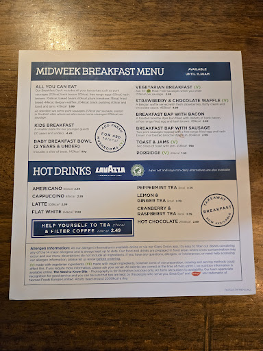 Read moreTried here for the all you can eat breakfast as the wife is pregnant and was craving breakfast but wasn't sure what she was craving so we figured an all you can eat would be the best bet. Unfortunately, although you can pile your plate as with most carvery places, this seemed like a breakfast carvery. Visit once (with a ticket to get your plate) get what you want and job done. This meant the craving couldn't be satisfied sufficiently lol. The other problem was this is that they had toast available, and some waffles (cut into pieces) with syrup available, but who wants this at the side of their beans and tomatoes? I've just realised that, neither me or the wife asked if you could revisit the food counter so maybe we missed something? But again, waffle on bean and tomatoes juice? As for the food, the quality was okay for a £6 breakfast to be honest, I've been charged more for much worse. The lack of a star for the food is that the selection wasn't fantastic (no scrambled egg for example, mushroom was a paid extra) and the cooking quality wasn't the best (although this is personal preference I guess) but bacon with what seriously seemed like uncooked fat, black pudding that resembled a hockey puck. Don't get me wrong, for the price for the breakfast, £6... There isn't much to complain about and it's good value for money. However, with a cup of tea and 2 Pepsi the bill was £22.... So an additional £10 for drinks. A £22 breakfast it was not unfortunately. Service was, sit at a table, order at the bar (or app) but any interaction with the front of house (Ashlee) was pleasant and no faults there to be honest. It's a very strong 4/5 for us, just missing out on a 5 because of the drinks costing as much as the breakfast and the slight gripes...
