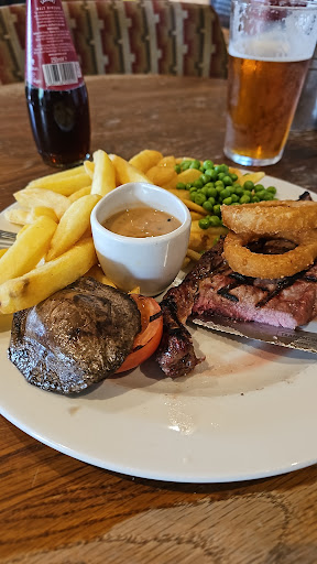 Well where do I start ??? Went for dinner tonight booked in for 4 adults and 2 children at 5.45pm. We arrived a little early at 5.40pm, we where taken to our table, we struggled to order using the menu app, so young waiter came over and took our order. We ordered 3 steaks, 1 well done, 1 medium with Diane sauce and 1 medium rare with peppercorn sauce,1 spare ribs, 1 mixed grill and a chicken burger. 2 bottles of wine , 1 Pepsi, 1 lemonade and 1 orange juice, it was by now 6pm. At 6.20 we thought drinks must be coming with food, 6.30 our drinks arrived but still no food, 6.45pm after waiting 45 minutes our food was presented to us. It was all down hill from then good and proper. When the steaks where placed in front of myself and my sister, we could smell fish, so looked to see if anyone round us had fish, not a captain bird's-eye in sight,then no burger bun with the chicken burger, not a problem 1 was brought to the table within 60 seconds. The 3 of us who had ordered steak proceeded to cut into our steak and oh my goodness, the well done 1 my daughter ordered nearly pulled her little teeth out, she picked it up and banged it on her plate, saying this is really dry and tough, my sisters medium was well done and as tough as the hide it came from, I was shaking with dred at the thought of cutting in to my medium rare, but I took a deep breath and went for the kill, I needn't have worried as it was well and truly dead, but like my sisters was dry, tasteless and tough as old boots, a debate actually ensued to see who's was the worst and to be honest there was only a cows whisker between all 3. I got up to find a waitress and asked her quietly if she could come to our table, as I didn't want to cause a scene as it was apparent that they were already under pressure as there were only a few staff, and other diners complaining, aren't I considerate??? The young waitress listened our complaints about the steak, and said she'd get new steaks for us, she however left our plates, 5 minutes later another what I assumed was the head waitress came to our table to say that there was a little confusion in the kitchen about what our complaint was, so we explained again about the steaks, to which she said she would get the steaks replaced, again leaving our plates, by this time the other 3 in our group were happily munching into their meals, and we're sat like lemons, so we began to eat our chips and sides, 20 minutes later still no steaks, when the who we think was the manageress came over to table to see if the replacement steaks were OK, my reply was that we still hadn't got them, she was apologetic and said I'll go get them, I said not to bother as they would more than likely be exactly the same as the first ones given how long we had waited them. My husband asked for 6 cakes to takeaway and the bill, we just wanted to get out. Now this is why I'm giving it 1 star opposed 0 stars, the manageress came back to table with our cake to takeaway, and was extremely apologetic saying that there was no charge for anything including ours cakes. I understand the covid restrictions have effected the restaurant and pub industry but that is still no excuse for the service or lack of we received. My advice is give this place a wide berth and go to the chippy...