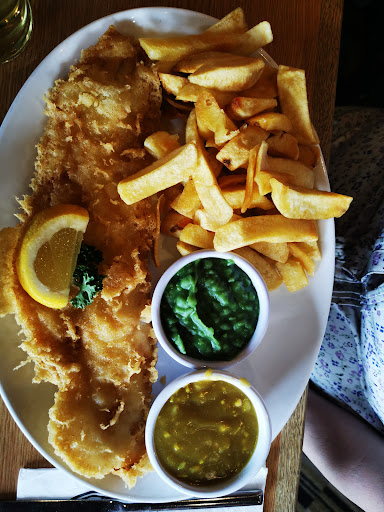 Keith was showing off with a large haddock chips and mushy peas. Left most of his chips but tried to style it out by covering with napkin. But I caught him and he was rightly shamed by the table. Fish was fresh and the batter crispier than a burns victim