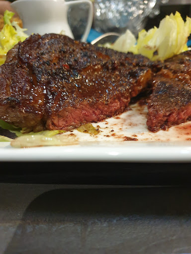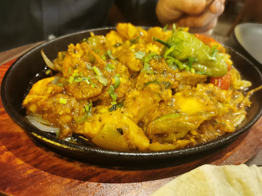 Mains. One in our party ordered a med rare Indian steak which came out overdone, this was perfectly rectified by exchanging and cooking fresh. The main issue was sat with our mains on serving plates with no serving cutlery or plates until we found someone in the back to bring us them. Naan bread is a no go, it comes out genuinely like pizza. It's a congealed, microwaved disaster. They would benefit from buying in naan rather than attempting to make their own. Currys just flat tastes although chicken kebab dish was tender and nicely spiced.
