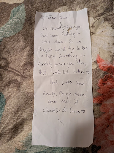 Picture of their note attached. (If there's a problem with me having the cake let me know and I'll pop in and pay for it. I'd hate for you all to get in trouble. 💋❤️