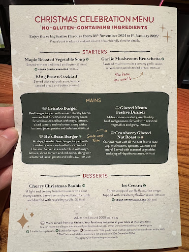 My father had a meat carvery and said the food was generally good. However, some of the carrots were too hard and not cooked properly, and some roast potatoes were not fully cooked with hard chunks in the centre. The parsnips were overly greasy, but the meat was good. He would also rate the restaurant a 4 out of 5.