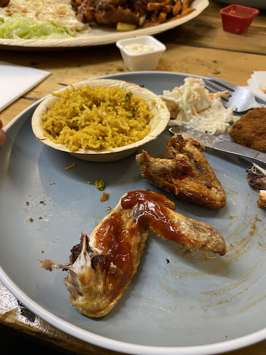 Food. The chicken wings and thighs were dry and had no seasoning. I asked for BBQ and got a dollop of the sauce on top. The pulled pork, no spices. The coleslaw had so much mayonnaise I couldn’t eat it. As much as I love mayonnaise I cannot eat a dish where that is the only flavour. Chips were nice!
