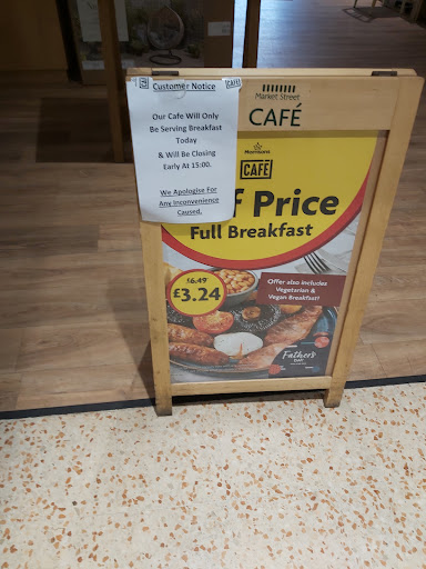 I've,eaten twice now in the cafe,both times my breakfast was,ample and wonderful,to the extent I had taken home some items from my" ultimate breakfast and ate them cold for supper tonight still tasting very quality so today for example I've spent£6.99 on an ultimate breakfast and it's kept me filled and satisfied till I can go tomorrow morning and do it all again,this is how to beat the cost of living crisis while being looked after by some very caring,helpful people,this morning I suffered a littleT.I.A whilst in the cafe,Thank You Cat,the cook for looking after me so well,I couldn't have asked for more and to Michael,manager I believe who did everything possible to alleviate my embarrassment in my situation.,so if like me you live alone get yourself down to Morrisons cafe for a super value quality breakfast eaten among friends get down Morrisons,it makes sense,in every way,I consider myself fussy about my food you don't pile me high Andi think it's wonderful I look for quality not necessarily quantity alone this was a terrific breakfast great way to start your day...