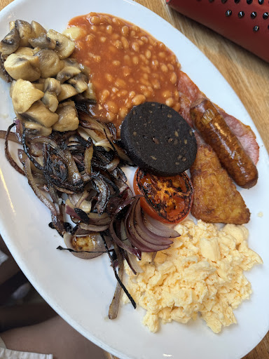 Read moreNice, clean cafe with good service. I had the veggie breakfast, without eggs. The veggie sausage served is the type with bits of veg, peas and sweet corn in batter not meat replacement. The menu says crusty bread but it was thin sliced cheap bread. The beans, mushrooms and hash browns were nice and hot. I wouldn't recommend if either vegan or veggie but the food looked nice for those that aren't. The prices are average it was £10.75 for the veggie breakfast, latte with soya milk and a...