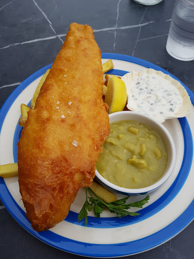 No one communicated anything to us while this was going on and we’d already paid. Thankfully after the second lady had left, the younger lady told us we would still get our food, but there would be a wait. She wasn’t joking. We waited 45 minutes outside for our exorbitantly priced fish and chips. Easily the most expensive I’ve ever had. To top it all off, the chips were overcooked and dry, the fish was average, and the mushy peas were also dry. Perhaps it was just the time of day and we got unlucky, but if we’re ever back in Dover this is one place...