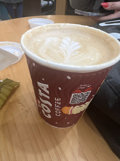 Read moreI use Costa all the time and love it. Today however, I went in and it was hectic. (I appreciate Christmas is coming). Even though I was drinking in, I was asked if I minded a paper cup (which I didn't) but when I got my 4 year olds cake in a bag with nothing to eat it with it was a bit of a nightmare. I had to leave her by herself at the table I had found to go Insearch of a fork as it was busy and I would have lost our table. When I sat back down, I realised I hadn't been given a teaspoon either. đł. I had to wait till the cake was eaten and then stir my coffee with the fork.
