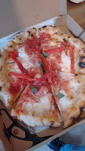 Read moreRonnie's is on the first floor and is accessed by a fairly uninspiring staircase. We were looking for it and missed it on our first pass of the high street! Look out for the sandwich board on the pavement. There's nothing special about the main entrance into Ronnie's, and the main dining space is sparcely decorated. It's quite an open space, with a large open fronted pizza oven in one half and dining tables in the other. Each table has a QR code on the table number, which allows relatively simple ordering of food. However, the lack of any pictures of the food is a great shame, as it is hard to know what you're ordering. Counter service is also available. Our pizzas arrived on quirky metal trays but looked great. My daughter's 6-inch pepperoni pizza felt a good size, and she thoroughly enjoyed it. I had a 12-inch New Yorker with small, very tasty, sweet peppers, sausage, and red onion. The flavour was great, and the crust had a fantastic balance of wood-fired smokiness, crunch, and chew. My wife really enjoyed her pizza with anchovies too. Toppings were very well balanced, which produced great flavour and enjoyment. We did also have a pot of chips to share, but these felt rather underwhelming in comparison to the pizza, and we really didn't need them. While we were there, it was very quiet, which we really appreciated, but I imagine with a few groups, the atmosphere could be quite fun. I think a few artistic photographs af the food in the stairwell and around the main space could improve the feeling of the place, and whet the appetite somewhat, but imagine there could be restrictions on what can be done in the stairwell. Considering how nice the food was, it felt like they could be shouting about...