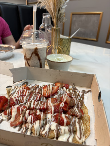 Read moreWe sat in; Food came in good time, service was very polite, with a smile and sometimes laughter. (We asked for takeaway boxes whilst sitting in) I ordered the strawberry crepe, compared to other places I’ve been too, gave a generous amount and went down a treat! Partner ordered the cookie dough and although couldn’t finish it all, loved the taste! Milkshake was thick and tasty (malteser) and we will definitely come back again! Seems like it is family run and has a kind atmosphere - they did seem busy with orders but still made time for us and waited us. Seating area is clean and nice however due to size of their restaurant was limited to 2 tables (however could house 4-6...