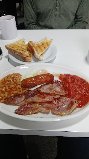 Went for a breakfast as only place open on a Sunday morning. Absolutely terrible, dirty dining area, flies everywhere, staff didn’t even make eye contact just asked what we wanted. Ordered breakfast came cold and didn’t look the best, some of it was edible. Ordered two take away sandwiches waited 30 mins, stood by the serving hatch whilst waiting and witnessed so much poor practice, hash browns cooked and left on a plate waiting to be used by an open kitchen window, lady putting raw bacon on the grill no gloves then picking up mushrooms to put in the pan. Not washing hands. Lady making my sandwiches stopped halfway through had a drink from her cup then put it down by raw bacon carried on making sandwiches. Dirty kitchen area, sandwiches went in bin on way out. First...