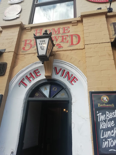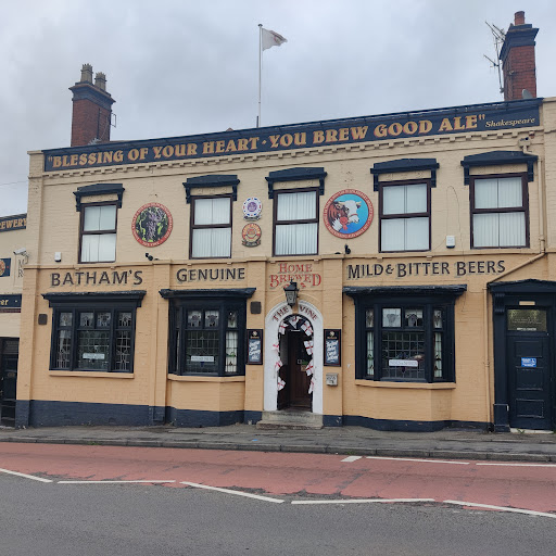 The Vine Inn also known as "The Bull and Bladder" the Batham's Brewery is in The Delph in Brierley Hiĺ, not far from the Merry Hill Shopping Centre. There is ample free car parking opposite the Vine on the other side of the road. This proper Black Country boozer is like stepping back into the early 20th century with dark wooden, old fashioned fittings and the bar and lounge off a central corridor and a large outdoor seating/smoking area at the back. The clientele is older men in cloth caps enjoying their pints of Batham's bitter (the pub's signature drink, brewed on site). I prefer the sweeter Batham's mild. A pint of Batham's mild and a half of cider was less than a fiver....great value. Onto the food which for me is the Vine's crowning glory. The Vine only serves food between noon and 2pm on weekdays and no food is served in the evenings, mind you there are tens of cobs and rolls in a cabinet in the bar for those who need some food to soak up the beer in the afternoon and evening. The food itself is ordered at the kitchen entrance where there's a display of the pies made with beef and Batham's gravy in a tin foil tray. There's also a pork or steak sandwich and a HUGE Ploughman's lunch for £4.50. The pies are £5 and the sandwiches £3.50. You pay for your food at the kitchen entrance and are given a numbered ticket. You sit down either in the bar, lounge or outdoor area telling the waiting staff whereabout you are sitting. We both had the big Ploughman's lunch for £4.50 which comprised 2 slices of either granary or white crusty bread, a great hunk of mature cheddar cheese, a large piece of boiled ham (vegetarians can ask not to have this), lettuce, tomatoes, cucumber, silverskin pickled onions, beetroot and Spanish onion. One slight quibble they forgot my Branston pickle! Friends have had the pies which come with fat chips and mushy peas and the pork sandwich both of which they said were excellent. I have had 2 Ploughman's at the Vine now and must say it's THE BEST Ploughman's...