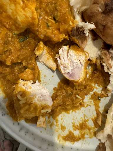 Went straight home and unpacked the food only to discover the pakora was very dry liked it had been overcooked but itwas strangely still cold in the middle. The pakora came with 2 sauces however the chilli one tasted like bottled sweat chilli sauce. Tried to reheat the pakora with a 30 second blast in the microwave, however this just made it even drierand it went in the bin.