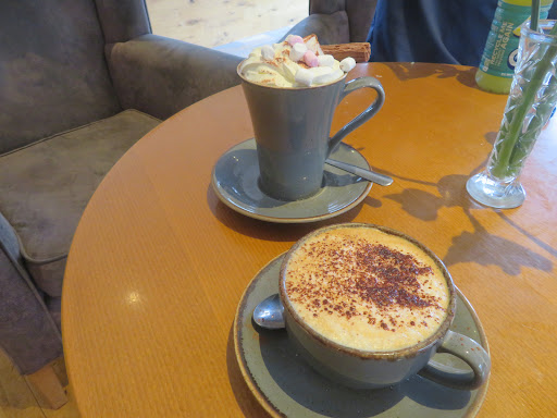 Visited here today! I saw someone with strawberry matcha and went in! Didn't realise there was a cafe there. I got an iced strawberry macha with oat milk, a mocha and a mars bar empire biscuit. The staff were lovely, there were a couple of tables in the hallway for dogs which was helpful for my pupper. Well priced and fairly quick service. Even had some dog biscuits in the hallway. Will visit again, super...