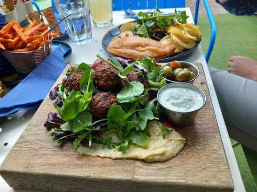 Read moreWalked down from Dunster Castle on a monday and not much open; but found this tea shop with courtyard at back through an archway. Raised area on synthetic grass but pretty as originally front courtyards to people's homes. Small vintage shed shop back of garden worth a browse. Quiet and Robins.. pied wagtails flitting around for crumbs. Cakes unusual combinations. Most pleased with my falafel board at 12.95. Portions good..service friendly..no rush. Ordered from front of shop..so need someone to keep table as no back entrance although food...