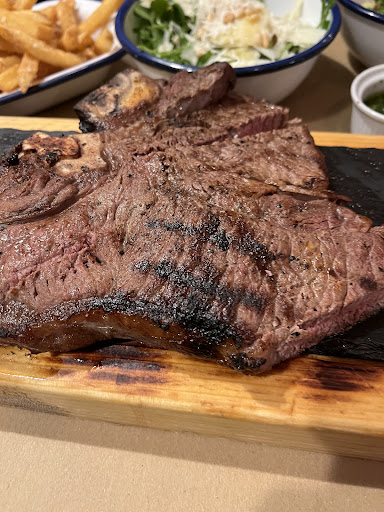 We ordered the Chateaubriand for two (£90—the same price as Hawksmoor). It only came with one side, which seemed odd given the price and the fact it’s meant for two people (each normal steak comes with 1 side). We added garlic butter and peppercorn sauce on the side (both at an extra cost). The garlic butter was excellent; the peppercorn sauce was just okay. The fries we ordered as a side were very good—crispy and well-seasoned—and the chimichurri lettuce wedge was also a highlight: fresh, flavorful, and nicely balanced.
