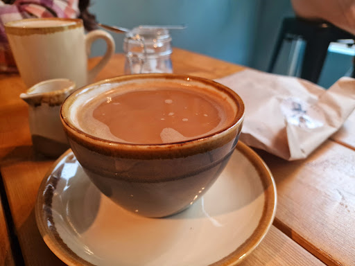 Read moreWell, we popped back in here this early afternoon for a coffee and a bite to eat. We opted for a cappuccino each and a sausage and sweet onion relish roll. It was delicious and so we had another each, (made in-house by the owner). Without doubt the best cappuccino we have ever had. You could actually taste the coffee unlike other well-known coffee outlets that sells coffee by the bucket-load. £2.95 for a large cappuccino is a bargain. Very flavoursome and at a very affordable price. Fantastic and extremely friendly owners and staff up for a laugh and always smiling and with nice seating and tables it's easy to just forget about any troubles you have and just enjoy your drink and snack.