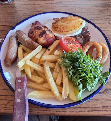 We always order via the app as it is especially difficult to stand at the bar for too long but on this occasion the grill menu wasn't available on the app and the staff that were told shrugged it off and said it is normal and out of their control. Essentially, tough and nothing is going to change which is fine I suppose as we will not be going again. Not just because of that but because the food we were served was insulting. My mixed grill for example, the meat had clearly been sat in a bath before making it to a grill. The Steak was dried out and full of gristle, the Gammon took some finding and was so dry that dust was falling out of my mouth. The chicken looked fab but was just mush which was much the same as the anaemic Sausages that were mushy with a dreadful flavour. I asked for no egg when asked about allergens but clearly that was ignored as pictured. This also wasn't corrected. I told the server as he dropped the plate on the table and he offered me a free drink. No, was the answer I do not want a free drink thank you. My goodness me. Pictured is the Bread and Butter. Add to that image that it was stale.