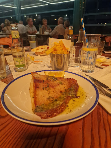 Mains came out and I must say the chips were beautiful... Best iv had. Food was cooked well . I had the Ray which had an odd aftertaste of like fennel and was overly salted but cooked nicely. The Ray was 25 pound for one portion and I had expected some sort of green on the plate... be it a few leaves of lettuce or maybe a little portion of peas but there was none of that and I wasn't advised of that so just had literally a plate of fish to eat which got quite tiresome without any green to break it up. It was cooked really nicely though.