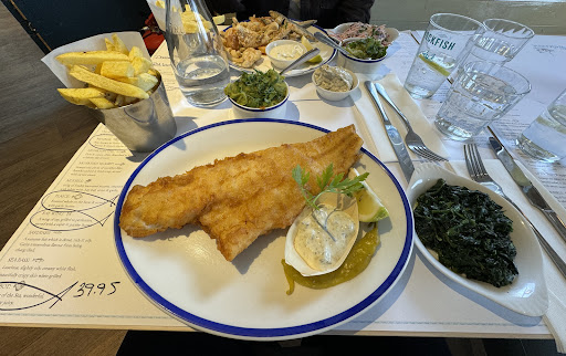 Read moreWe were a party of 4 and this was the second time I’d eaten here . We ordered 6 oysters between 2 as a starter. The oysters were served with a what was supposed to be,I guess a mignonette , but it was, I think, onions rather than shallots, in a poor quality red wine vinegar, which altogether was too strong for the oysters. The oysters were fresh but mixed in size and had not been properly shucked, so we were left trying to separate them from the shell with a fork.I chose the scallop starter as a main course but was disappointed to find it smothered in soggy, oily breadcrumbs that did nothing to add to an already oily, oven baked dish . It was served with slices of baguette— I guess to mop up the oil. The side of spinach that I ordered as a side was fresh , but was no more than an oily, garlicky spoonful, and at £3.50 for the quantity , was outrageous . The chips were homemade and good . The wine list, for a seafood restaurant, was woefully lacking in not having a classic Chablis or Sancerre on its list, ( it has had previously ) yet expecting to charge just short of £40 for an Albariño. We ordered Picpoul de Pinet as the alternatives in that price bracket were Italian wines ( pinot blanco or pinot Grigio ) not really suitable for the seafood on offer. Our friends ordered the Frito misto and fish and chips . They said it was ok, but in reality they weren’t paying takeaway prices. I don’t know if they served deserts because no one came to ask if we wanted one, or offered us a desert menu . We asked for the bill , and it came . No one asked if we wanted a coffee or a liqueur . It was a Friday night , and it wasn’t booked out or particularly busy . I think...
