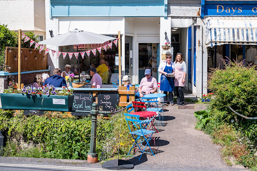 We drove into Budleigh Salterton today for the first time ever and spotted this dear little cafe on our way down the street, looking for a parking space. There were many people sitting outside in the sun so we walked back to it to ask if it was dog friendly. The cutest little girl was efficiently behind the counter and informed me that “ yes they were dog friendly, inside and outside” She gave me some menus and asked me where we would like to sit and asked how many were in my party? We sat indoors as the ambience was just so lovely. I ordered the quiche and my husband ordered the ploughman’s platter. We had a pot of tea each and I was delighted to discover that decaf tea was available. The home made cakes looked sumptuous and people outside seemed to be tucking into the scones and cream with gusto. The lady behind the counter was extremely welcoming , friendly and efficient too. The young girl was her granddaughter and what a fine job she was doing at making the customers very welcome. We absolutely loved our visit today and would highly recommend this delightful tea room for food and beverages. Families are welcome and dogs made very welcome. Loved the cream versus jam poll on the...