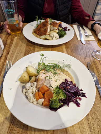 Read moreI took my dad and very elderly grandad here for lunch today. It was overall very nice. The staff were really nice and the service, especially from the guy in shorts, was very attentive and friendly to start with, although once the pub got busier after 1pm the service did get slower (and it did get really busy -surprisingly so for a weekday lunchtime!). He still delivered friendly service though. My grandad is very elderly and he struggled with the noise level in the pub once it got busier as he finds it hard to pick out conversation over background noise. The food was very nice and reasonably priced for what it was. We had pork belly and scallops in chilli sauce which were both delicious. For dessert, the lemon posset was great. The sticky toffee pudding wasn't the nicest that I'd ever had but it was a good sized portion. Overall we spent just over £110 for 3 people with drinks and two courses, so not bad at all. I would definitely come back again if I'm...