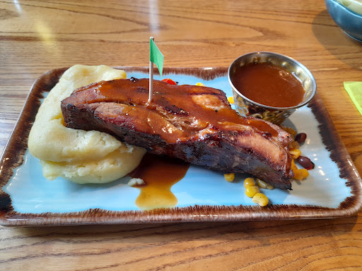 The menu is broad—rotisserie chicken, grills, vegetarian options—but the salad bar is often depleted or unhygienic, with mixed utensils and low stock. Menus themselves are frequently sticky or visibly dirty, which undermines the refreshed interior and basic hygiene standards. Service is inconsistent: some staff are friendly and attentive, others distracted or slow to respond. Food wait times can exceed an hour, even during quieter periods, and substitutions (e.g. sweet potato fries for jacket potatoes) may incur extra charges without warning.