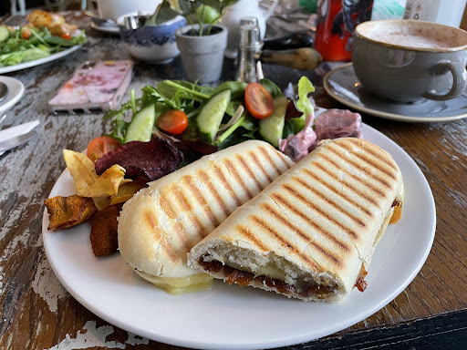 From the moment you walk in you feel like you are in a place where people care and have passion. From the decor, the fresh flowers, the pretty furniture and smile on staff and customer faces. The food was fresh and tasty and came quickly, I had a cheese and onion chutney panini (See pic) with a coffee and my wife had a Spinach and Goats cheese tart, the little man had a jacket potato with Cheese and beans on the side. Delicious, you could taste the fact it was made by someone's hands rather than chucked into a fancy heater or microwave.