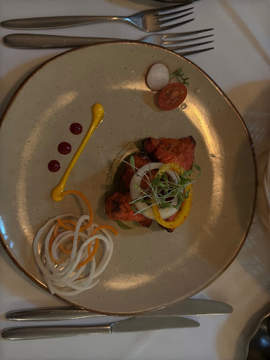 Service was immediate despite the number of people coming in. We started with a couple of papadums and these were served with the usual fruity sauce, yoghurt and chopped onions. Perfectly good but nothing special. But then came the starters - we both opted for the Chicken Tikka starter which was elegantly plated and serviced in decent time. (photo attached).