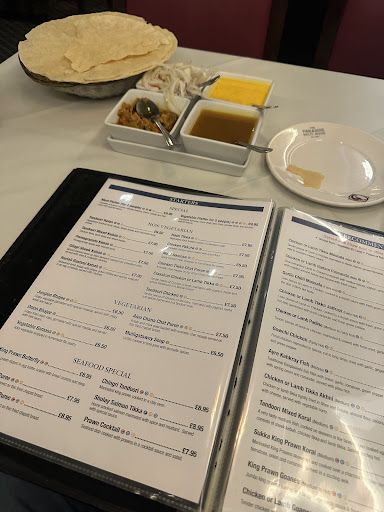 Where do I begin, I went in for dinner Table for one . I thought that’s easy enough expectations wasn’t any as I hadn’t been there since a meal with Mark Owen .. went in hungry . Ordered vegetable samosas . They were hot , however not crispy also no colour , filled with peas and a salad which was limp leafs .Popadoms if that’s how you spell it apologies.. they were soft , had to call waiter to look for fresh ones , these were obviously left from yesterday . Ordered for Main chicken tikka , this was served on a hot platter , similar to a Mexican fajita meal , pieces of chicken not on the bone , colour has red as a tomato , meat was white inside , soft but absolutely no flavour or spice , no seasoning . Very poor main , I returned this back to waiter and I was asked did I want another dish unfortunately Not , I was put off .. the chicken hadn’t marinated and was awful . The rice was hot and Naan bread , I asked for garlic and got plain was probably the only thing fresh . The chutney and dip were thin sauce and tasteless .. you were unable to dip .. coke ordered in a pint glass was full of ice and flat , obviously poured from a bottle .. guys chef you need to step up with those prices serving mediocre food . You get a better spread in a box at Waitrose . Left restaurant...