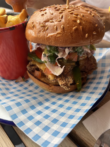 Read moreWe came here for a quick lemonade the first wekend they were open to see what the place was like. Being very familiar with Baroosh, the previous incarnation of this establishment, I could see the similarities and the changes. Similarities The bar is roughly the same. The prices are similar. High end for Stortford. The fancy chandelier is still over near thr toilets. Differences Completely redecorated in a retro pub style. Lots of dog themes and photo's. More orientated towards seating/gastro pub. Top bar has many TV's sports bar style. Football and cricket showing. As it was pleasant and comfortable we stayed for lunch. Food is mostly burgers and Hot dogs all soinded nice with vege alternatives. As we were hungry we both had the stack burger and can highly recommend it. The food prices are similar to other gastro pubs around Stortford. They now have a shuffleboard tabke under the chandelier but I'll investigate this...
