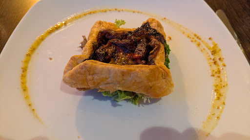 My wife and I visited today for a Sunday meal, upon arrival a customer was having a heated debate with a staff member about finding bacon in a veg dish! The customer was clearly upset, however the very young employee didn’t seem to know enough to deal with it and looked out of his depth! Perhaps it was a veggi replacement product, who knows but not a great arrival for us. We were seated and our waiter was pleasant. We ordered drinks, a bottle of white wine, however, a part filled bottle was delivered to our table in an ice bucket that had been used to serve glasses at the bar (a first for me)! Without hassle it was changed for a sealed new bottle and apologies made. Food started to arrive all was good, the food was delicious and to a high standard, I ordered a 2nd pint of Guinness that didn’t arrive so I needed to ask again! It then came (its the little things, and they added up). The staff generally seemed nice but clearly no direction from an experienced manager! they where all young and inexperienced but where doing there best and worked hard under the circumstances. I didn’t like the fact at the end before we paid our waiter was behind the bar swallowing from a pint of beer like he had a thirst to quench in full view of the seating area, non alcohol or not that just didn’t look right to me, bad form!