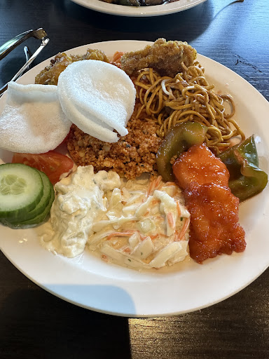 Myself and my partner were really looking forward to trying the food here. When we arrived, we were greeted quite pleasantly and shown to our table, the host took our drinks order and told us to go up whenever we were ready. My partner and I were just chatting away and waiting for our drinks and when the host turned up with them he again told us we can go up and get food? It made us feel like we had to go up there and then! A bit too abrasive and made us feel a little uncomfortable. Next, the food was a HUGE disappoint, quality and choice wise, it was a huge let down. The salt and pepper chicken was literally just frozen Nuggets with a bit of salt and pepper thrown on and they were ridiculously rubbery! The chicken satay again was just frozen processed chicken cubes, really watery and actually tasted nothing like chicken satay! There was not even a hint of peanut in the sauce and it tasted more like standard curry sauce than anything. The Cantonese noodles were very very bland. The samosas tasted exactly the same as the spring rolls which was strange. And to be honest, there just wasn't much choice. Nearly all the meat in the oriental section was chicken and after tasting 2 of the dishes and being extremely disappointed, we decided to not even bother with the others. There were only 2 pizzas available, pepperoni and margarita, which isn't a massive issue as they are what people normally want. However the margarita was lovely, really fresh and piping hot. The pepperoni you could tell had been sat there for ages, was cold, undercooked and the pepperoni just looked raw! The selection of deserts just looked like cheap cheese cakes from aldi, cut into cubes and put into a case and we never actually got to try any as someone was supposed to be serving them and there was no one at the station the entire time we were there. Finally, we ended up sitting after finishing our food for nearly 20 minutes just waiting for someone to give us the bill but no one ever came and it was not made clear at any point if someone would be coming to us so we could pay or if we had to find someone? In the end I just went to the bar and paid. The whole thing was very underwhelming, the food was not to a decent standard and the staff were either too eager or seemed to not care? The place has a lot of potential and I hope they make improvements for the future! Definitely not worth the...